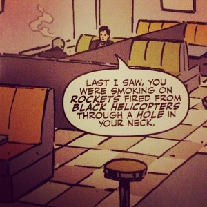 JH: Pretty much, I think early on we were discussing about what the comic book would entail and Chris and I were pretty much in agreement we wanted to bring the Lone Gunmen back. You died off screen so anything’s possible. I just think it was necessary. You know, part of the point of the story is to tell what’s next, but also, you know, bring back a lot of those old elements so that people get back to what they sort of enjoy. They certainly enjoyed you.