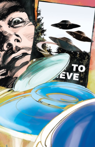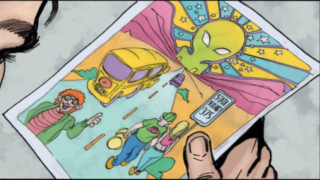 The X-Files has had its crazy episodes that involve hallucinations (6X21: Field Trip) or off-beat situations to comical effect that get resolved by the episode’s end (6X04/05: Dreamland), along with some drug-induced hallucinations too (ayahuasca in 3X18: Teso Dos Bichos, designer drugs in 5X01: Unusual Suspects). But for a series that close to the spiritual world and to “opening the doors of perception” never did it focus directly on drug use — that’s a shame! Joe Harris goes down this route head-on and takes Mulder on a colorful trip on the Extraterrestrial Highway.