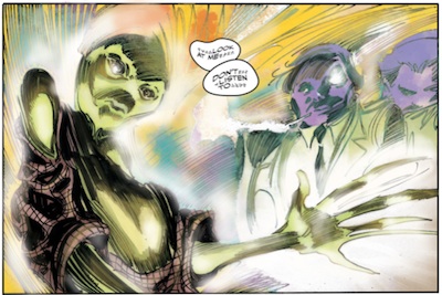 Actually, Harris had also mentioned that he wanted to do an off-beat story in the vein of the experimental and funny episodes of the series and these issues might be it, along with the humorous “Season 10 Greetings” in the X-Mas Special that came out at the same time. This is something very difficult to pull off in the comics format, and “G-23” gets better with a re-read! Harris’ dialogue is, as always, channeling the characters very well, dense with witty Mulderisms and sinister monologues of the CSM and, here, with references to headshop culture. On the other hand, a somewhat annoying aspect of these issues, and Season 10 overall, is how much the Cigarette-Smoking Man is used. He is an iconic villain and there is much fan service in resurrecting him, and clearly this is one of Harris’ favorite characters as well — but where it used to be that Mulder-CSM scenes would be far and few, making us relish in each line and bit of exchange between them, now there is really no surprise to see him. He has been in 10 out of 20 issues so far, and will probably be in the 5 next ones too. Being a great fan of the mythology, I should not complain, and really having more stand-alone stories out there would spread things very thin given the release schedule of a monthly comic — but it would be interesting to ponder what would be a good mythology/stand-alone issues balance if/when there is a Season 11.