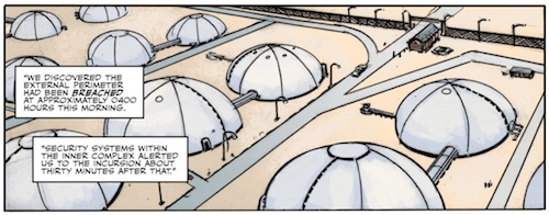 Of course, since we are talking 1960s, Harris can’t resist using the CSM and Bill Mulder in the time they were working in top secret projects for the Government, even before the Syndicate was formed. The domes in the abandoned Nevada base look like the bee hive domes from Fight the Future — it is implied that what’s in there is a genetically modified plant, possibly marijuana, to carry the G-23 substance, which could be made out of…aliens. Why G-23? As one astute fan pointed out, “G-23 Paxilion Hydrochlorate” is also the name of a drug in Joss Whedon’s “Firefly/Serenity” (spoilers in the link!), similarly linked to governmental experiments and madness — nice reference!