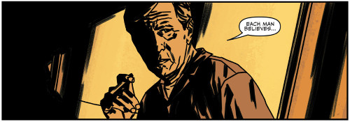 Finally, Skinner gets the news from AD Morales that the X-Files division has been outsourced to Cantus — in what will certainly be a major aspect of Season 11. Last time we saw Skinner, he was in the hands of the First Elder in the Syndicate HQ (#24 teaser), who was explaining to him the dangers that Gibson represented and (off-panel, like with Scully) must have come to an agreement with him. Skinner goes to Morales with the intention to uncover Cantus’s infiltration of the FBI and block Cantus’s action, instead he is confronted with more news, and a package from the DoJ: a wristwatch. Is this part of the personal effects of a detainee? It could be Scully’s, which would come at a surprise to Skinner. It certainly doesn’t look like Mulder’s watch. Actually it looks like Skinner’s, although I wouldn’t know how to explain that (has he been turned into a hybrid and doesn’t know it, while the original perished with the Elders harakiri?).