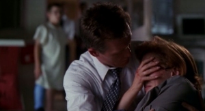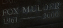 Season 8 pretty much rewrites the happenings of season 7, which was otherwise rather empty in mythology terms. Following the operation to transfer the alien genes from Mulder’s brain to the Cigarette-Smoking Man’s (7X04: Amor Fati), the CSM presented a terminal illness. Perhaps this is something Mulder would have developed in the long run if he had kept the genes. But Within reveals that Mulder developed a terminal illness like the CSM throughout season 7 but chose not to tell anybody: the operation itself was the cause. Mulder knew he was going to die. “Mulder was dying. […] For a year, he was going to doctors. There’s a clear record of his decline.” He arranged for his funeral and had a tombstone made for the whole of the Mulder family, including a cenotaph for Samantha (incidentally, we are finally given the onscreen confirmation of Mulder’s mother’s name, and the dates of birth of both parents: 1936 for William and 1941 for Tena). He arranged this in weekly trips to his mother’s grave in Raleigh, North Carolina. Retrospectively, the knowledge of his impending death was one additional reason why he went ahead with being abducted in Requiem, in hopes he might be cured (8X11: The Gift shows that he was already looking at other ways of being cured).