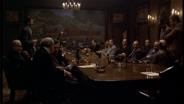 well-dressed men meeting in a darkly lit room in New York. Just like