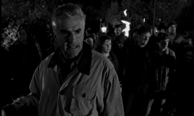 grey, the imagery of the angry mob carrying torches seeing the death of