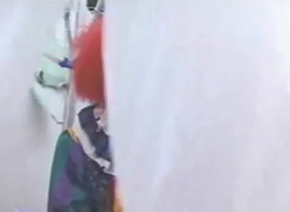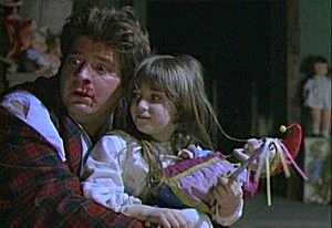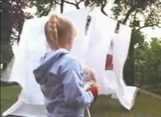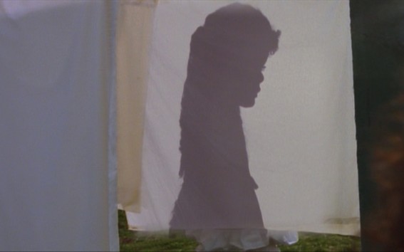 We see the menacing shadow of the doll behind the hanging sheets, blown