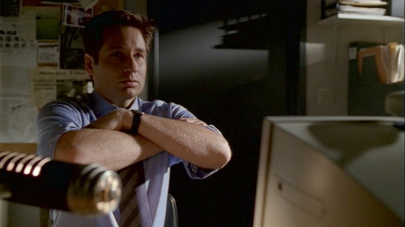 At one point Mulder crosses his arms and nods his head. He imitates a