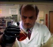 Deep Throat says “we’ve had the [alien] tissue since 1947“, referring to Roswell. Later he says “the wellspring, Miss Scully, the original tissue” when he speaks of the fetus. From 6X12: One Son we know the fetus was given in 1973, the tissue they’ve been using up until then was from bodies of aliens from downed UFOs. What DT means is that though they’ve had alien tissue in their possession since 1947, the tissue used as raw material from 1973 and on is the fetus. Dr. Berube was cloning the original cells to have more material to work on (“Some kind of bacteria, each containing virus and it looks as if Berube may have been cloning them.“) Deep Throat tells Scully “In 1987, a group of children from a southern state were given what their parents thought was a routine inoculation. What they were injected with was a clone DNA from the [fetus] as a test.” This is the exact case profile for 2X10: Red Museum, where we encounter again DT’s murderer, the Crew Cut Man. Title note: An Erlenmeyer flask is a common object in chemistry labs. The flask containing “monkey pee” (labelled “Purity Control”) is an Erlenmeyer flask.