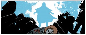 On an entirely different style, mixed media, I would have loved to see Dave McKean do the X-Files. However, even if Michael Walsh’s art can still bear some improvement (certain perspectives, some details…), I find the overall esthetic with thick black lines and marked contrasts very well adapted to the X-Files — this is reminding me of the Adlard approach in early Topps comics. This “classic comics” approach sticks much better to the XF universe than a great share of modern comics that are post-processed a lot in terms of colouring/lighting on computer, or the semi-photorealistic approach of the 2008 Wildstorm comics. This “old-style” also fits well with the classic cinematic approach the X-Files had, breathing cinema into television in the 1990s. Walsh has acknowledged that he’s studying framing and camera shots from the show to inform his art, which is good.
