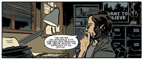 The X-Files are not new to comics. XF comics started appearing as early as 1995, with the first issues (writer Stefan Petrucha / artist Charles Adlard / covers Miran Kim) proving to be the best of them. The relationship of the comic creators with the all-controlling Ten Thirteen Productions was not an easy one though, perhaps because Carter was not a comics man himself (as per Frank Spotnitz), and the comics stopped in 1998. There was a revival led by Frank Spotnitz around the hype of I Want To Believe in 2008, which was the closest thing XF got to a reboot separate from its main continuity; and a year later a cross-over (with horror series 30 Days of Night), which is another route franchises take when the main story has been told and characters have become part of popular culture. “The X-Files Season 10” is wholly new in the storytelling direction the comics take, and in the interest the creator (Carter) shows to them.