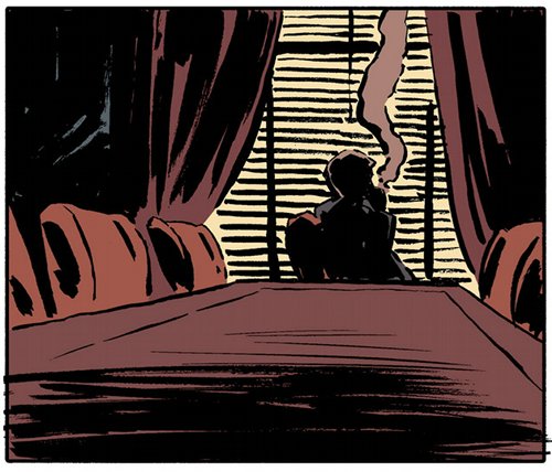Incidentally, Walsh in this issue is very cinematic, using the cinematic equivalent of wide panoramic shots, fade to white, high angle shots…