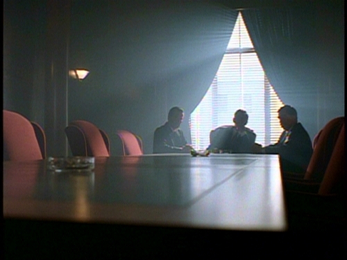 The “CSM” reappears at the closure of this storyline — and we get further confirmation that there’s more than meets the eye with this apparent resurrection from #3. The scene happens in the very same apartment where we saw all the Syndicate meetings from seasons 3 to 6, at 46th Street, New York City. The “CSM” first muses in a way similar to what we have seen many times before, about the Yellowstone UFO, “it’s getting harder to find a good vacation spot unspoiled by tourists and commercial development” — this is reminding of discussions in the Syndicate about storing and safeguarding UFOs in 3X16: Apocrypha: “Leaks in security and a heightened public interest have made the base of Nevada unviable“. Below, from 2X03: Sleepless.