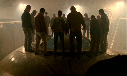 The alien craft emerges and burns them (like another UFO burnt the Faceless Rebels in 5X14: The Red and the Black); the Acolytes are in religious rapture, actually happy that they are taken by the ‘purifying light’ of the aliens. They are not considered equals by the Colonists, they are not even considered important. Perhaps they are a group of hybrids that was created years ago and that was left completely alone after the destruction of the Syndicate in 1999, after which the alien Colonists used other means than the classic hybrids to advance their plans. These hybrids instituted this religion to make sense of their existence. This still doesn’t explain some features of these hybrids, such as the glowing eyes, the flash of light and telekinesis, which we had not seen in hybrids before.