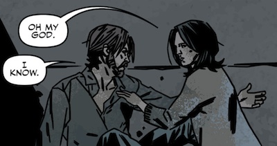 Did Joe Harris have to bring Doggett & Reyes back? Judging from past issues, the focus of Season 10 is very much on Mulder and Scully and the mythology that takes us back to seasons 2-5 of the show. Quite possibly, Harris never intended to bring these characters back until he was convinced otherwise by fan reactions. I have nothing against the characters, but my definite preference of the show lies with the earlier seasons. In this issue, there’s not much we learn on these characters and how they developed over the decade we didn’t see them: there’s some interaction — but not particularly much — between Doggett and Reyes that might imply they had a close relationship, as could have been inferred from many episodes in season 9 (he also calls her “Agent Reyes” here, quite the professional); and we also get a passionate hug between Scully and Doggett, keeping with the closeness they developed over season 8. Good characterization with Doggett, who refuses to kill his captor and stands for justice as he always has; Reyes is more impulsive.
