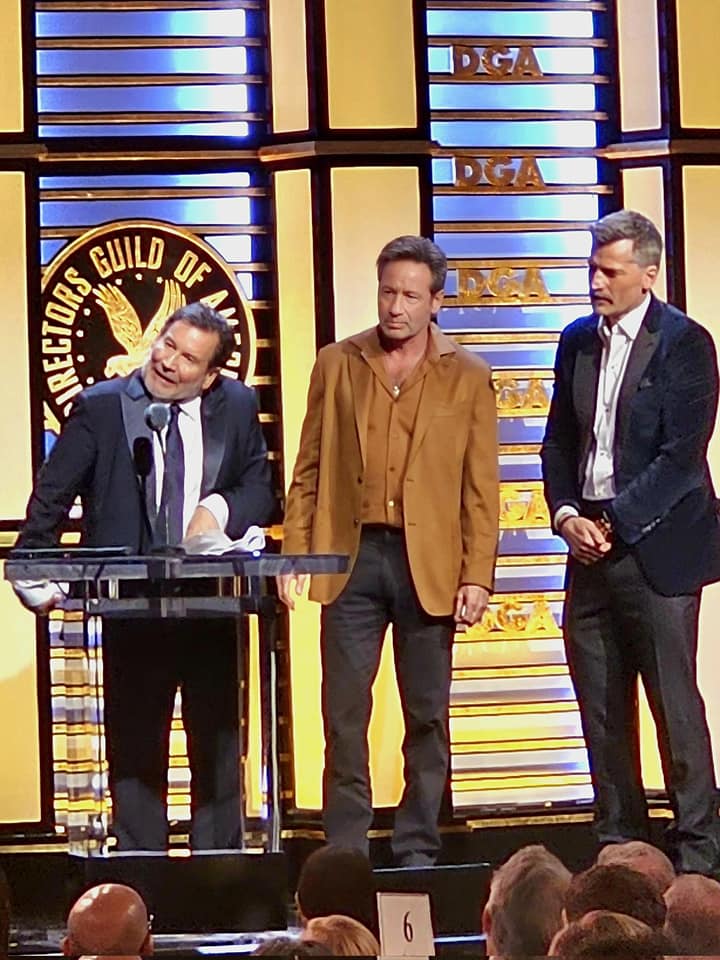 From yesterday’s Directors Guild of America (DGA) Awards, where David Nutter got a lifetime achievement award! And a part of his speech, where he talks about directing with Parkinson’s. Also present were David Duchovny and Nikolaj Coster-Waldau (Game of Thrones) but also Rob McLachlan (Millennium cinematographer), Chris Carter, Jim Wong, Glen Morgan & Kristen Cloke.