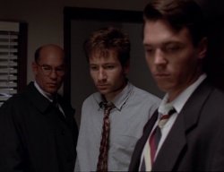 Krycek wasn’t supposed to leave the FBI so soon: “you’ve earned [Mulder’s] trust, the object now is to preserve it“, “until [Krycek’s] assignment is complete” (CSM). Krycek’s immediate task was to corroborate Mulder’s story on the death of Duane, so that Mulder doesn’t get the blame for this death against appearances. But Mulder is faster than expected and is sure to blow Krycek’s cover. Krycek’s last assignment as woud-be FBI agent is to save Mulder from being accused of Duane’s murder; with Krycek gone, the death of Duane remains unresolved and the FBI faces a dead end. Character development In these early episodes it’s so painfully obvious how frustrated Krycek is with being so low on the hierarchy. After failing to shake hands with M&S, CSM treats him very poorly: “we tell you only what you need to know […] you have no rights, only orders to be carried out“. This announces his rebellion in 3X02: Paper Clip and his progressive rise in power. Finally, after some episodes where Skinner appeared as cold as CSM, Skinner uses his own authority in the FBI to go against the Syndicate: he reopens the X-Files, “that’s what they fear the most“. CSM is seen lurking and smoking in Skinner’s office time and again, but Skinner isn’t manipulated as easily as Blevins, or at least he isn’t that deep into the Syndicate. Blevins is higher up the hierarchy of the FBI than Skinner, and by acting on his own free will, Skinner must have limited his carreer prospects. CSM will always have some trouble getting Skinner to do what he wants. We see Margaret Scully again, after 1X12: Beyond the Sea. She still calls Mulder “Agent Mulder”.