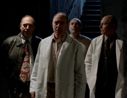 An important element that appears in scripts and is barely heard in the episode is what the clone Dr. Aaron Baker tells the ABH when Agt Weiss comes to investigate: “There were years, years when our people did get along, where we could share in the entire planet. But you seem to be…you seem to be unwilling to share. I don’t understand, I don’t understand! You did not fail…” ABH: “Your plans will not succeed“. The cloned hybrids consider themselves as a separate people and up to a point though that when the colonization would come, the Earth would be shared between the aliens (Purity) and the hybrids (and humans?), but the clones discovered this wasn’t the aliens’ plan. Samantha further says: “our [humans’] stewardship of the planet is being forsaken, and that by default, they [the hybrids] will someday become the natural heirs“. They hoped that after the real colonization takes place, the hybrids will inherit the Earth or coexist with the Black Oil aliens because of their immunity to Black Oil. Of course all of this is a bit awkward as we’re still in the early phases of the mythology and not everything is clear in the minds of the writing staff; we hear of colonization for the first time, only not by what will be the final colonists. How to make your hybrid clone Though we are fed with lies many times over in these episodes, these are cloned hybrids. Among lies, the Samantha clone says: “Through hybridization […] though the biologies are incompatible, they finally found a way to combine human DNA with alien DNA“. The Samantha clones do come from the original Samantha (how else would they know so much on the Mulders?), the male ‘Gregor’ clones must come from an abductee in the same fashion (see 6X12: One Son for some confirmation). The method is as follows: