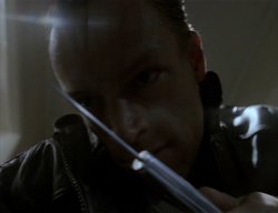 Misc Scully knows of Mulder’s trick with the taped ‘X’ and blue light, but X is willing to give information only to Mulder himself. Skinner has to ‘beat’ it out of him. Skinner probably knows X already, having seen him with the CSM (X works for the CSM — 3X23: Wetwired). It’s become a kind of trademark of X to participate in violate scenes, and it will become worse later; nothing to do with the paternal figure of Deep Throat. Again, the only ones who move against the aliens (here, the ABH) are the military, not the Syndicate itself (not even CSM appears here). The submarine USS Allegiance tries to destroy the underwater UFO just before the power loss, and X tells Mulder that “an attack fleet left port from Anchorage” to obstruct the ABH’s return. The Syndicate and the aliens must have an understanding that if a UFO goes down, the Syndicate won’t obstruct the army from destroying it. The ABH’s craft was able to immobilize the submarine and the ABH killed its crew to make sure he’d have a safe passage to his craft. In the end, the ABH goes back to Alaska and uses the US army submarine to reach his craft; but he doesn’t leave Earth (we see him again in 3X24: Talitha Cumi). After this episode, there is little doubt left that there’s something ‘weird’ going on. As Mulder says, “I will have already learned the answer […] there is intelligent life in the universe other than our own“. A shapeshifting ‘man’ with superhuman strength, clones that bleed green, an unidentified toxin… Scully has seen all this yet after this we will still see her as skeptic as before, time and time again. It’s the point where the viewer’s suspenion of disbelief takes a blow. Scully and Mulder are two almost caricaturised characters that stand for ideas, skepticism and belief. That’s why Scully keeps refusing to believe, or it would be too easy. The tricky thing is to write stories where both explanations, scientific and paranormal, are equally plausible. As the series progresses, this becomes increasignly difficult.