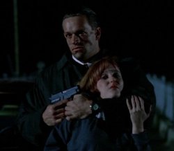 Using Samantha to manipulate Fox We meet the Mulders. Bill & Teena are divorced (Mulder’s surprised to find his father at his mom’s); the divorce probably happened right after Samantha disappeared, Fox most likely stayed with his mother afterwards. Teena is very shocked to see Samantha return, but Bill is cool, most likely aware already that this is nothing but a clone. We’re not aware of Bill Mulder’s part in the Syndicate yet (2X25: Anasazi) but his distant stance and harsh words to his son are in accord to his long-term plan to harden Fox’s feelings in order to feed his will for exposure of the Syndicate’s deeds (Fight the Future). Another thread is begun here: when Mulder asks “where is she?“, the ABH finally answers that “she’s alive“. Of course in Carter’s mind Samatha was still alive at that time, the twist of 7X11: Closure is still far away, but the ABH’s words can be explained. The ABH works here for the Syndicate, and it is the Syndicate’s policy to manipulate Mulder into a blind crusader that can be easily fed with lies that discredit UFO lore and ease the Syndicate’s doings at the same time (5X02: Redux). To tell Mulder that Samantha’s still alive fuels Mulder’s quest in the best way possible (“faith to keep looking“). Whether she is or not is irrelevant. Or, the ABH just wanted to get rid of Mulder. Even the Samanthas manipulate Mulder (“We knew you could be manipulated“), using their physical appearance to enlist his help. “We know where your sister is. Ask yourself, Agent Mulder, how else would we know so much about her?” It is true that the clones know much of Samantha Mulder’s history because of their ascendance, but this line is another manipulative attempt to give Mulder another reason to save the clones from the ABH.