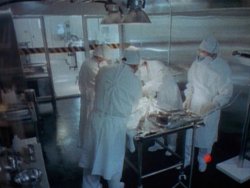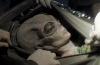 This UFO would then be the same historical UFO that is the center of the story of 3X15: Piper Maru/3X16: Apocrypha. The being that’s autopsied in Mulder’s $29.95 Rat Tail Productions video does look alien, but again so do many hybrids we’ve encountered. He has green blood and Scully denotes the peculiarity of the doctors’ face masks; a toxic green blood is characteristic of the hybrids. In 6X01: The Beginning we learn the grey aliens are one physical form the Black Oil aliens can take. From this autopsy we can extrapolate that the body chemistry of the greys is close to similar to that of the hybrids and shape-shifters (ABH): green blood, toxic because of the gas masks but not as oozy. The Black Oil would then have to retreat somewhere: namely, to the brain of the grey, possibly only at the epiphysis. See 4X07: Musings of a CSM and 4X09: Tunguska for more. Everything points to this being a genuine EBE, the deceased passenger of the salvaged UFO.