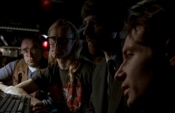 Scully’s log 1 (teaser monologue): “I feel time like a heartbeat, the seconds pumping in my breast like a reckoning. The numinous mysteries that once seemed so distant and unreal, threatening clarity in the presence of a truth entertained not in youth, but only in its passage. I feel these words as if their meaning were weight being lifted from me, knowing that you will read them and share my burden, as I have come to trust no other. That you should know my heart, look into it, finding there the memory and experience that belong to you, that are you, is a comfort to me now as I feel the tethers loose and the prospects darken for the continuance of a journey that began not so long ago, and which began again with a faith shakened and strengthened by your convictions. If not for which I might never have been so strong now as I cross to face you and look at you incomplete, hoping that you will forgive me for not making the rest of the journey with you.” Scully: “What makes you think this is a conspiracy, that the government’s involved?” Scully’s log 2: “In med school I learned that cancer arrives in the body unannounced, a dark stranger who takes up residence, turning its new home against itself. This is the evil of cancer, that it starts as an invader, but soon becomes one with the invaded, forcing you to destroy it but only at the risk of destroying yourself. It is science’s demon possession, my treatment, science’s attempt at exorcism. Mulder, I hope that in these terms you might know it and know me and accept this stranger some may recognize but cannot ever completely cast out. And if the darkness should have swallowed me as you read this, you must never think there was the possibility of some secret intervention, something you might have done. And though we’ve traveled far together, this last distance must necessarily be traveled alone.” Frohike: “The Lombard system is a dedicated mainframe. Impossible to hack. So they say.” CSM: “It’s funny, I always thought of you as Fox Mulder’s patron. You’d think under your aegis that he wouldn’t be consigned to a corner of the basement.”