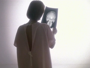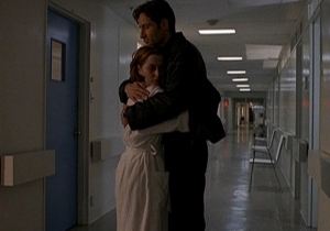 After pointing Mulder once to the CSM’s (2X08: One Breath), Skinner talks Mulder out of seeking the CSM for answers. Skinner is always in a difficult position as the middle man. He wants to keep Mulder out of the hole he’s digging for himself with bargaining with the CSM. Skinner goes to CSM and compromises himself again by pleading for a cure for Scully. He knows that by this the deal he made with him in 3X02: Paper Clip on Mulder & Scully’s safety is no more — which was true anyway since Scully’s life is threatened. This pact with the devil continues in 4X21: Zero Sum. Leonard was right (4X14: Leonard Betts): Scully has cancer! We enter an extremely emotional story arc for Scully (and Mulder). Her beliefs are shaken, even though she won’t admit it, and as she becomes aware of the possibility of impending death she is very candid on the log she writes in what is at that time her deathbed — a log that is revealed to be addressed to Mulder. This culminates in the hallway scene, with a hug (and a cut kiss, which indeed could have been attributed to their emotional state, shippers take notice).