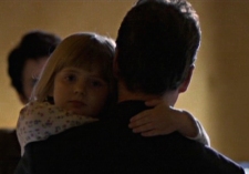 This is the last time we see the Scully family because of the move from Vancouver to Los Angeles after season 5 (we do see Sheila Larken, ma Scully, in seasons 8 & 9). What to do of Melissa’s phonecalls out of her grave? “Dana? She needs your help. She needs you, Dana. Go to her.” Melissa summons her sister Dana’s help to save a child from heavy suffering. Something that corresponds exacly to the Walk-ins of 7X10: Sein und Zeit & 7X11: Closure, the spirits that take children out of this world when they’re in terrible pain. Was the Melissa of the phonecalls a Walk-in? Was it really Melissa’s spirit, that could have ‘turned into’ a Walk-in? Both answers bring into the spotlight the subtle spiritual world only hinted at in the X-Files (1X12: Beyond the Sea, 7X04: Amor Fati…). With Scully hearing her dead sister and considering extreme possibilities such as Emily being Melissa’s secret child, Scully takes on a role normally held by Mulder: that of the spooky workaholic. She does not spend a single day of the holidays with her family in San Diego. As the counterpoint, Mulder is very down to earth (Scully: “I can protect her too.” Mulder: “Yeah, but who’s going to protect you?“). No Syndicate member appears and the words ‘extraterrestrial’ or ‘alien’ are never mentioned here. These are signs of the twist of faith that occurred with the Redux trilogy (4X24, 5X02, 5X03): Mulder being more dubious and Scully more open to the religious and the spiritual. A trend also hinted at in 5X06: Post-Modern Prometheus for Mulder (“I don’t even know if I believe in that stuff anymore.“) and in 5X17: All Souls for Scully, where she remembers again her experience with Emily. Religious imagery is found in Emily as well: the last time we see Scully and Emily, they embrace in Emily’s hospital bed; this cross fades to an image of the virgin Mary holding baby Jesus in a stained glass image in the church holding Emily’s funeral. Scully, like Mary, conceived Emily without any intercourse; and Emily, like Jesus, lived a sinless life halted by a painful death. Emily dies and Scully organises a funeral for her. But in the final scene, she is surprised and shocked to find the coffin empty; Mulder turns around and is surprised as well, neither of them knew. Emily’s body was stolen, replaced by sand to simulate the weight (or ashes, to keep with with death symbolism); Scully just said “There is evidence of what they did“, but she is disproven. Only Scully’s cross is left, the only thing now linking her to Emily; Scully holds it thoughtfully, as in the sand desert in the episode’s teaser. In these episodes, Scully discovers she has a daughter she knew nothing about, fights for gaining her adoption, only to powerlessly see her suffer and die, and having her body stolen at the end. She is given something she thought she would never be able to get, a child, only to have it taken away in the worse way possible. The Syndicate, not content to have ruthlessly desecrated her own body without her consent during her abduction, meddles with things around which she would like to build a wall, to protect and care for. By reaching their hand and taking Emily away, and what’s more not even leaving her dead body as a consolation, the last wall is breached and Scully is left alone, exposed naked to the world. “Alone, as ever“, as she says in the teaser of Emily, wandering in a sand or ash desert — the symbol of Emily’s empty casket.