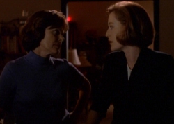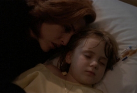 Melissa: “There is no right or wrong. Life is just a path. You follow your heart and it will take you where you’re supposed to go.” Scully: “It says, definitely, that Melissa is not Emily’s mother, but that they found striking genetic similarities between Emily and Melissa, so many that they ran a test against another sample that they already had.” Emily Scully’s teaser monologue: “It begins where it ends. In nothingness. A nightmare born from deepest fears, coming to me unguarded. Whispering images unlocked from time and distance. A soul unbound, touched by others but never held. On a course charted by some unseen hand. The journey ahead promising no more than my past reflecting back upon me. Until at last, I reach the end. Facing a truth I can no longer deny. Alone, as ever.” Emily: “Mommy said no more tests.” Scully: “Who are the men who would create a life whose only hope was to die?” |