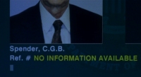 Connections are made, conspirators are revealed. “Smokey’s got a name!” Scully discovers that the CSM is called C.G.B. Spender (the ‘CGB’ is after Chris Carter’s grandpa… Charles Gengis Balthazar?), but apparently it’s an alias, “one of hundreds” — which is surprising since he’s been using this name for so long (at least 1973) and officially in his marriage with Cassandra. Scully: “Cassandra Spender is, indeed, the mother of Agent Jeffery Spender and the ex-wife of C.G.B. Spender.