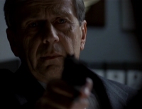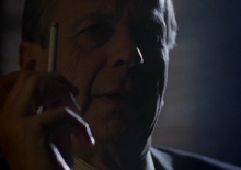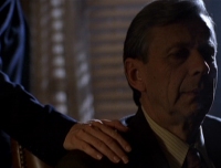 The CSM holds his ground, defends all the decisions he made in the past and, unlike Bill Mulder in 2X25: Anasazi, has no remorse. But even though he reveals everything to Mulder about the Syndicate’s history, he still keeps things to himself. He doesn’t say anything that would incriminate Diana or put her place as a double agent in jeopardy — and he says nothing of his relationship with Diana either. Even in this frank moment, he still manages to manipulate Mulder by using the card that always works: Samantha. “You won’t stop it. Not if you want to see your sister again.” He still tells Mulder that Samantha will be returned by the Colonsits even though he knows this to be wrong, as a last attempt to draw Mulder to his side and pull him to the El Rico gathering.