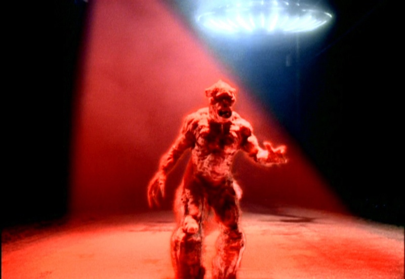 “The first time you ever really saw a spaceship on the show, how do you do it? Do you want to do it in your face or do you want to be a little more coy about it? And this dark mass starts appearing behind the building and Mulder looks up and sees this dark mass, and suddenly the brightness of it is so overwhelming that you can’t distinguish it that way – it’s like, it was so dark you can’t see it, and then suddenly it’s so bright that you can’t see it. And I thought that was absolutely brilliant, it was really the first time our mythology started to take on that kind of a science-fiction feel.”