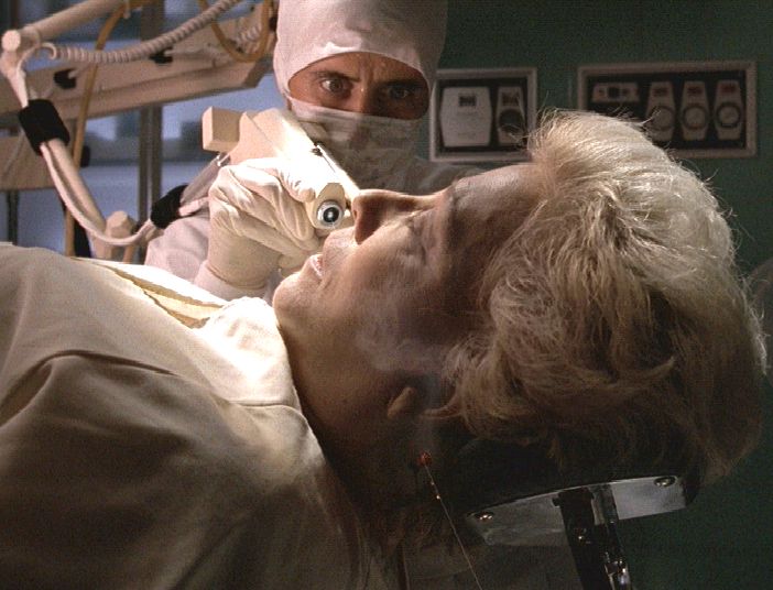 The story of the episode is quite similar to that of the film, where a surgeon kidnaps young women in order to graft their faces on the face of his daughter, who has been disfigured in a car accident. In the episode, the plastic surgeon does that operation on his own face, substituting his old face with a new one.