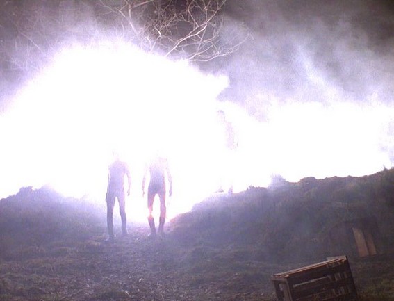 Like in 1X03: Conduit, the motel abduction scene is potentially inspired by the abduction scene in “Close Encounters”: an abductee inside a room, bright blinding lights from the outside, humming noise, door opened by telekinesis, horrified or mesmerized faces saturated in white light.
