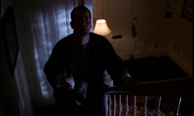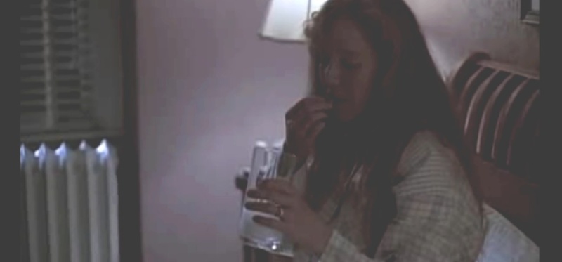 Moreover, the drink Laura (Lisa Jane Persky) is given in the episode is shown, very menacingly, glowing greenly in the dark while her husband is carrying it to her bedroom. This is lifted exactly from Hitchcock’s film, where the husband brings a glowing glass of milk to the wife, who is suspecting her husband of plotting against her.