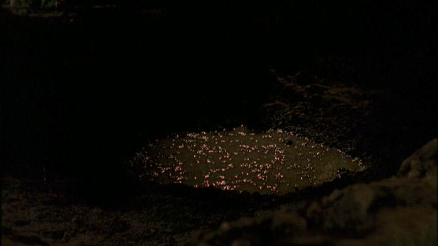 The phenomena in this thriller are explained by a newly dug swimming pool that rests upon an ancient cemetery, which releases spirits and demons, in a planned community neighborhood. As a result, coffins and corpses emerge from under the ground throughout the neighborhood. This is all similar to the episode, which also takes place in a planned community; Mulder attempts to dig a swimming pool, breaking the laws of the community, and the muddy monster of the episode emerges from underground.