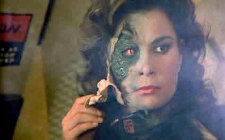 The way the Rebels are presented in this episode and the next are a bit different from 5X13: Patient X and 5X14: The Red and the Black: they don’t exactly change the shape of their original face but they actually have a layer of skin, which can change form, on top of their normal face. This is similar to the alien invaders in “V”, who have a layer of artificial skin in order to hide their true horrible and reptilian appearance beneath it. The scene where Jeffrey tears the skin off the Rebel’s face and discovers in horror another face beneath it is similar to the discovery scene in “V”.
