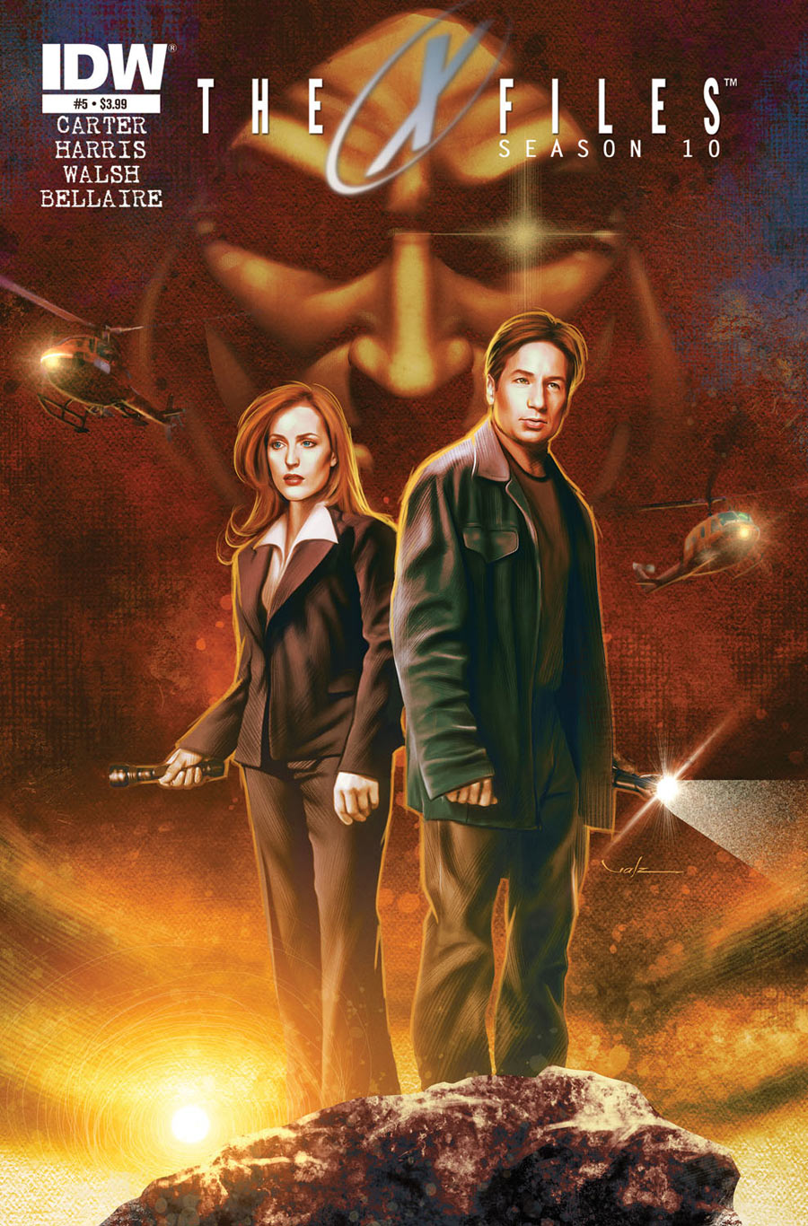 As with every month over three months before publication date, IDW Publishing releases its solicitations, for comic book buyers to place their pre-orders and for comic book makers to better assess their print volumes. The program is out for October 2013, and The X-Files Season 10 #5 is out; beware of spoilers below!
